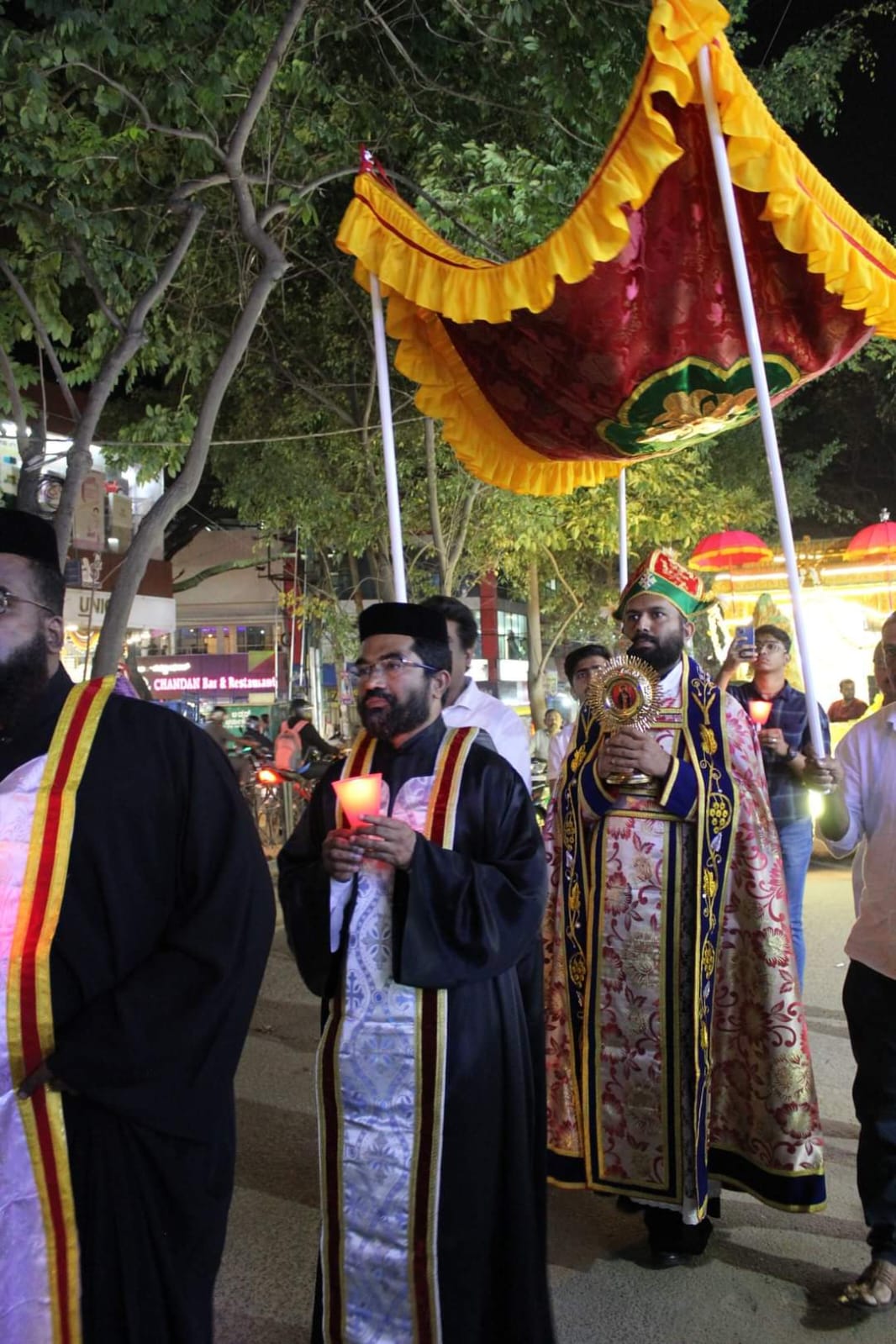 The Perunnal procession started from: St.Gregorios Orthodox Church Mathikere -> Ramaiah College Junction -> St.Marys Cross Tower -> St.Gregorios Orthodox Church Mathikere. Neighbouring Orthodox Churches joined this blessed feast. Rev.Fr Anish Varghese and Rev.Fr.Joshua(Fr.Emil) blessed the occasion with their presence.The Procession ended with a benediction and dinner